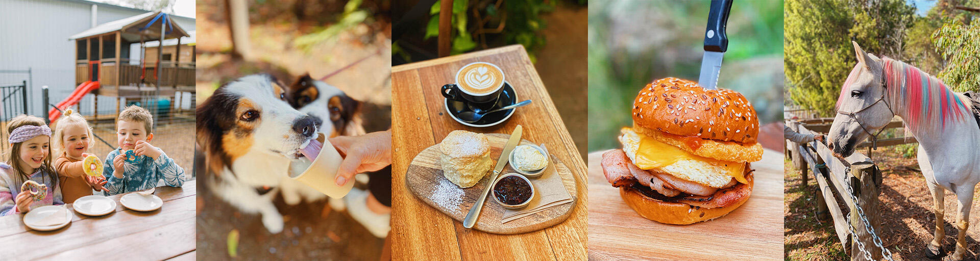 Located alongside the picturesque Lilydale - Warburton Rail Trail in Mount Evelyn. We are a unique establishment with not only delicious food and great coffee on offer, but also a fully enclosed playground with cubby houses, places to lock up your bikes AND horse yards to park your horse!
